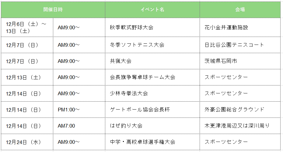令和7年度 12月の大会・行事予定
