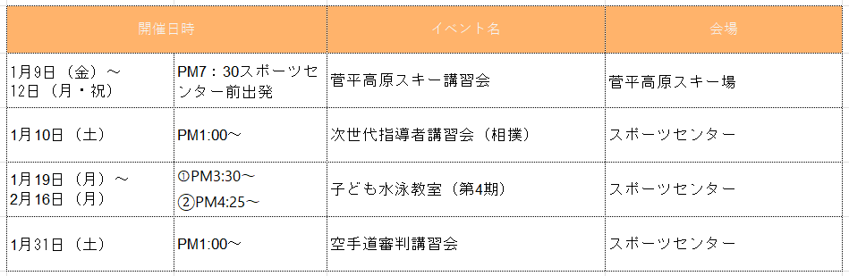 令和7年度 1月の大会・行事予定
