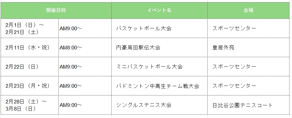 令和7年度 2月の大会・行事予定